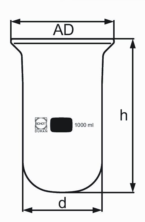 Kociołek reakcyjny, poj.1.000 ml, DURAN® cylindryczny, z płaskim kołnierzem, DN 100 (fi106mm/h205mm) |