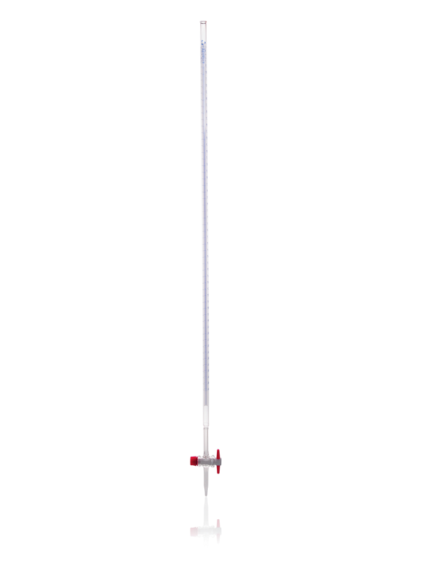 DURAN® Burette with Schellbach stripe and PTFE key, class AS with straight standard ground stopcock, 30 seconds waiting time, with batch certificate and certificate of conformity