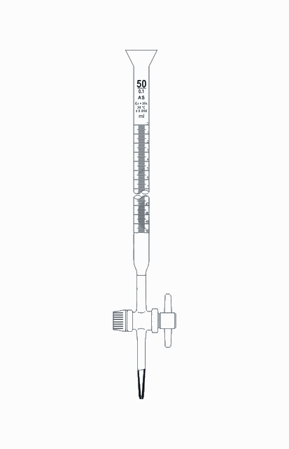 Biureta klasy AS, wykonana z wysokiej jakości białego szkła borokrzemowego, zgodnie z normą ISO 385 (oprócz 10 ml z podziałką 0,1), odpornego na działanie gorącej wody, kwasów, a także roztworów zasadowych. Posiada kran, wykonany z teflonu, który charakteryzuje się szczelnością i możliwością dozowania cieczy po kropli oraz większą precyzyjnością niż kranik szklany. Różni się od zwykłych biuret wlewem w kształcie stożka.