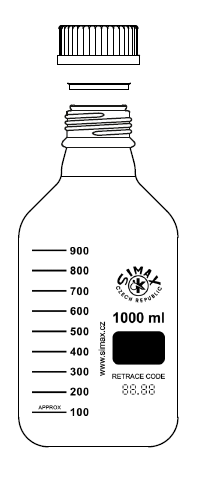 REAGENT BOTTLE -1/+1,5 bar Provided with well-legible scale and large field for description (indication of the content). The modified shape of this bottle provides for pressure resistance -1 to +1,5 bar